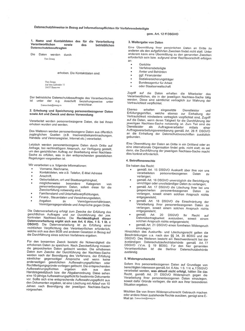 Es gilt die aktuelle Datenschutzverordnung